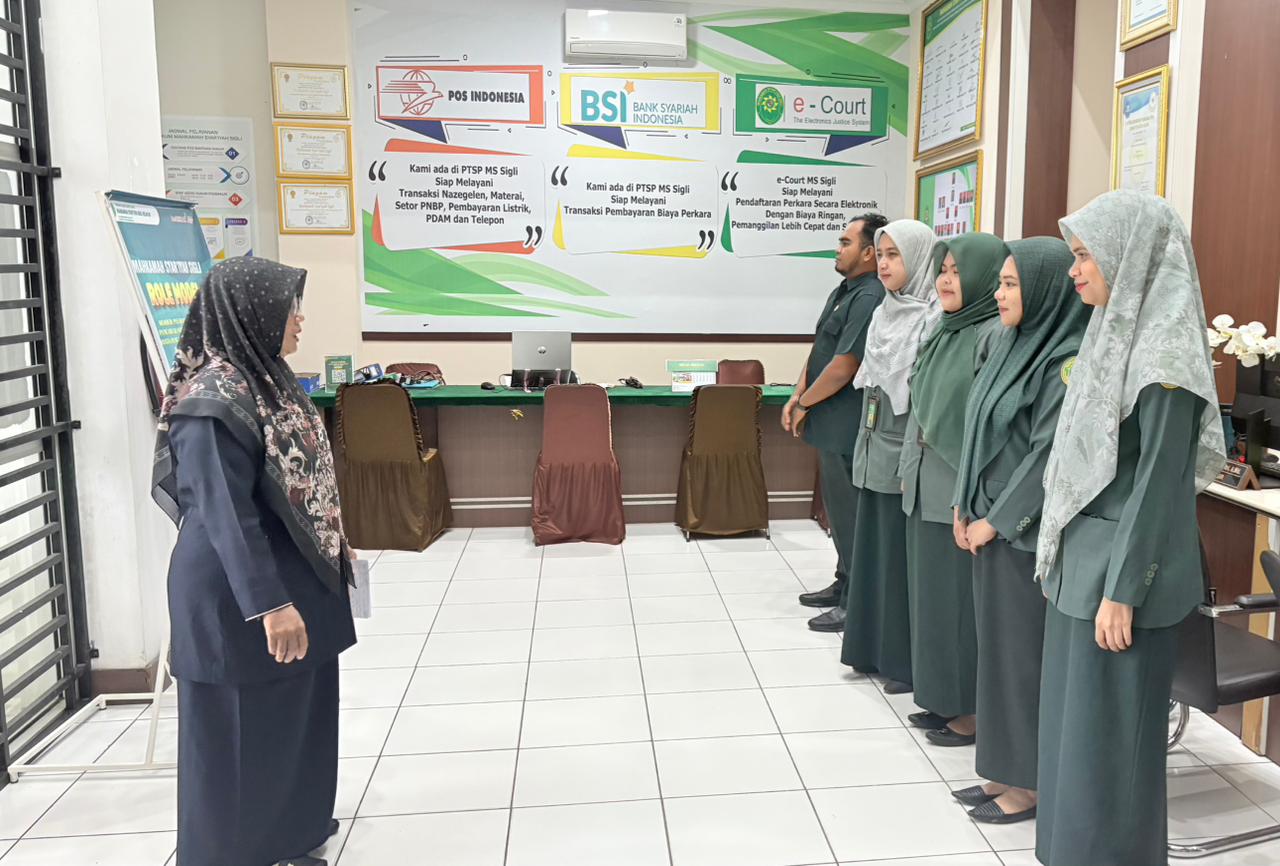Hakim Dra. Sumarni Beri Briefing Pagi Petugas PTSP MS Sigli Tekankan Kenyamanan Pelayanan