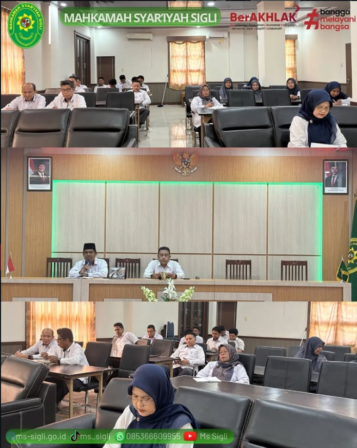 Sigli, Senin, 27 April 2026 – Ketua Mahkamah Syar’iyah Sigli memimpin rapat tindak lanjut hasil Rapat Koordinasi IKU pada pukul 10.00 WIB hingga selesai, bertempat di Aula MS Sigli.