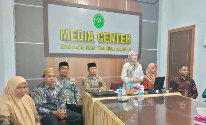 Ketua Mahkamah Syar’iyah Sigli memamaparkan apa saja yang telah diupayakan oleh satuan kerja untuk meraih predikat WBK dengan sangat baik, dan mendapatkan apresiasi dari tim penilai Mahkamah Syar’iyah Aceh.
